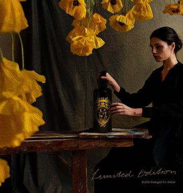 The violet-hued glass features a detailed illustration of our In Natura Veritas legacy logo, an emblem of craftsmanship and efficacy, made from 18-carat gold ceramic and individually applied to each bottle.